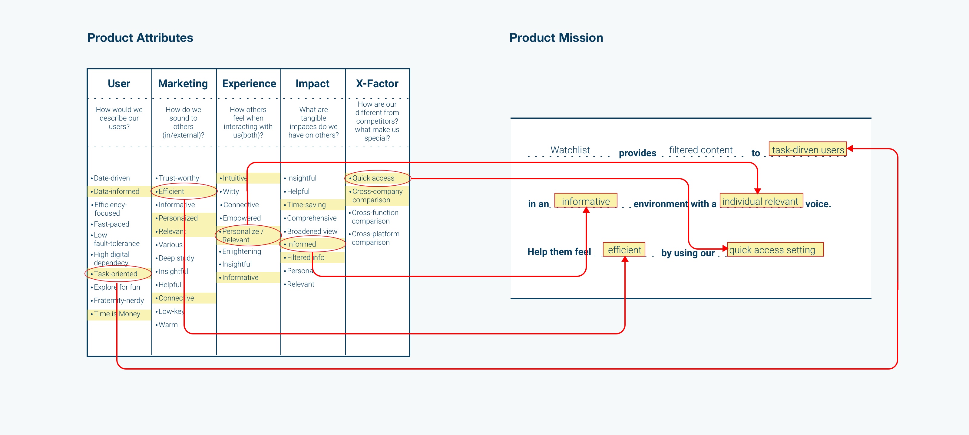 On our platform, we have the watchlist as a product over two years, with time being, we were gathering feedback from our clients. The inefficiency manage workflows block clients from using the downstream applications, for example, the email newsletter setting application. To encourage using watchlists and fill in the gap between the watchlist and downstream applications, the execution team decided to redesign the watchlist and reconsider its position on our product line.